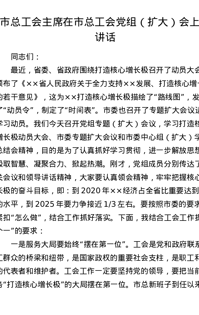 市总工会主席在市总工会党组(扩大)会上的讲话