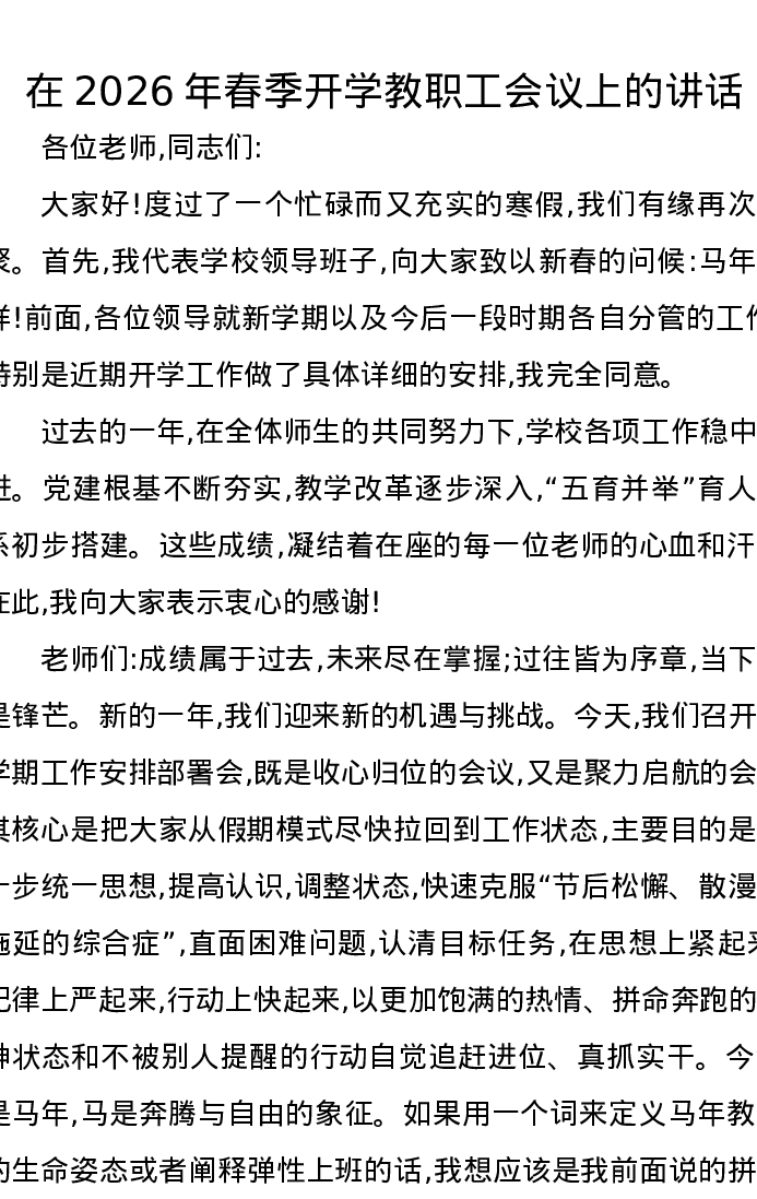 在2026年春季开学教职工会议上的讲话