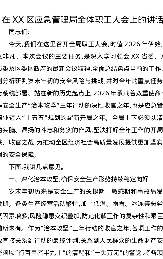 在XX区应急管理局全体职工大会上的讲话