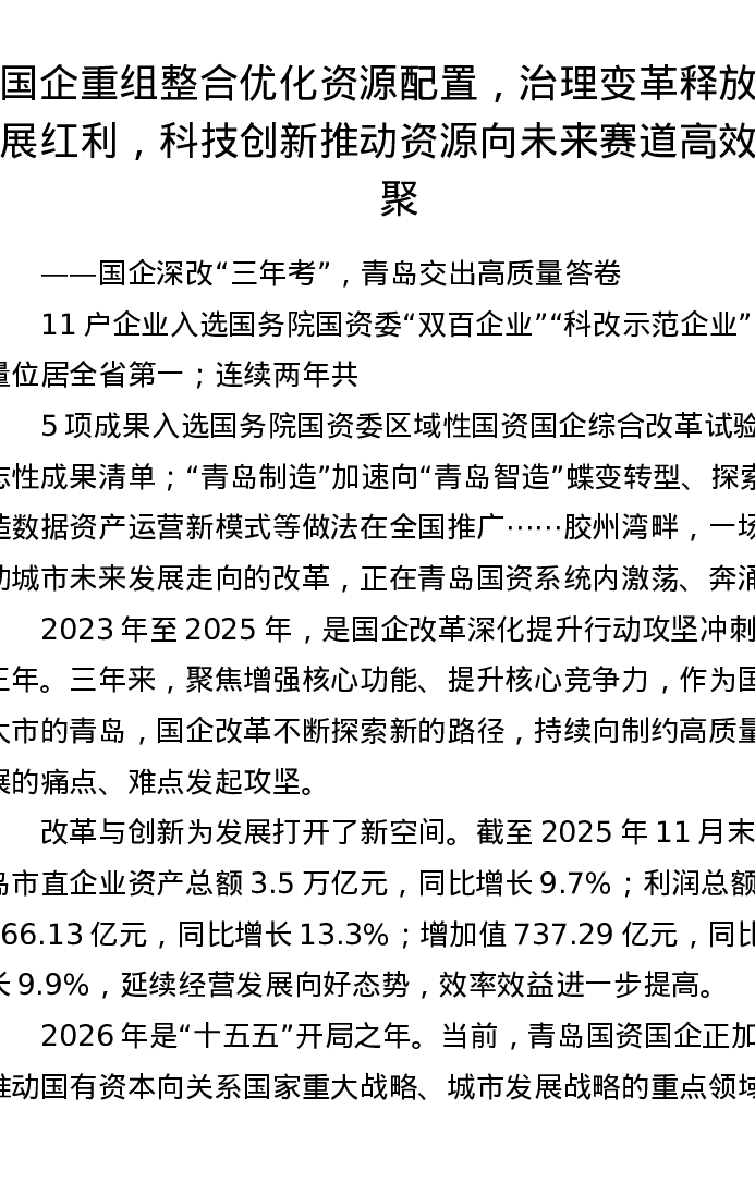 调研报告:国企重组整合优化资源配置,治理变革释放发展红利,科技创新推动资源向未来赛道高效集聚