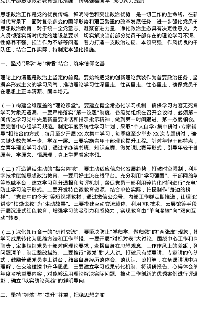 党员干部思想政治教育强化措施:铸魂强基固本 凝心聚力提质