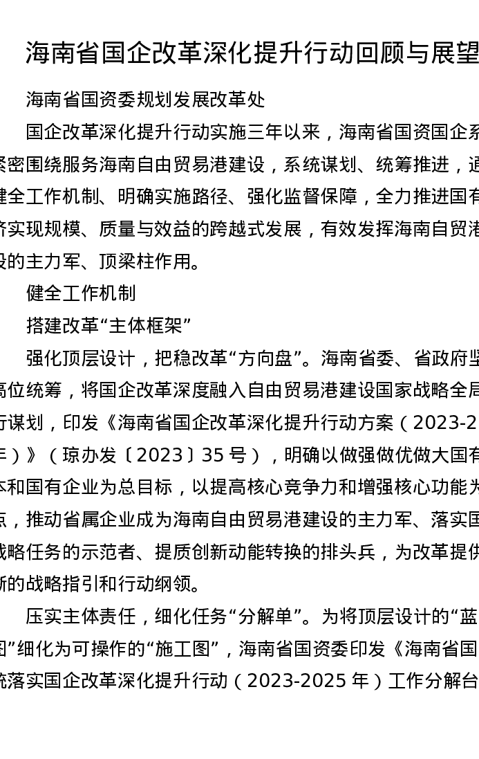 海南省国企改革深化提升行动回顾与展望