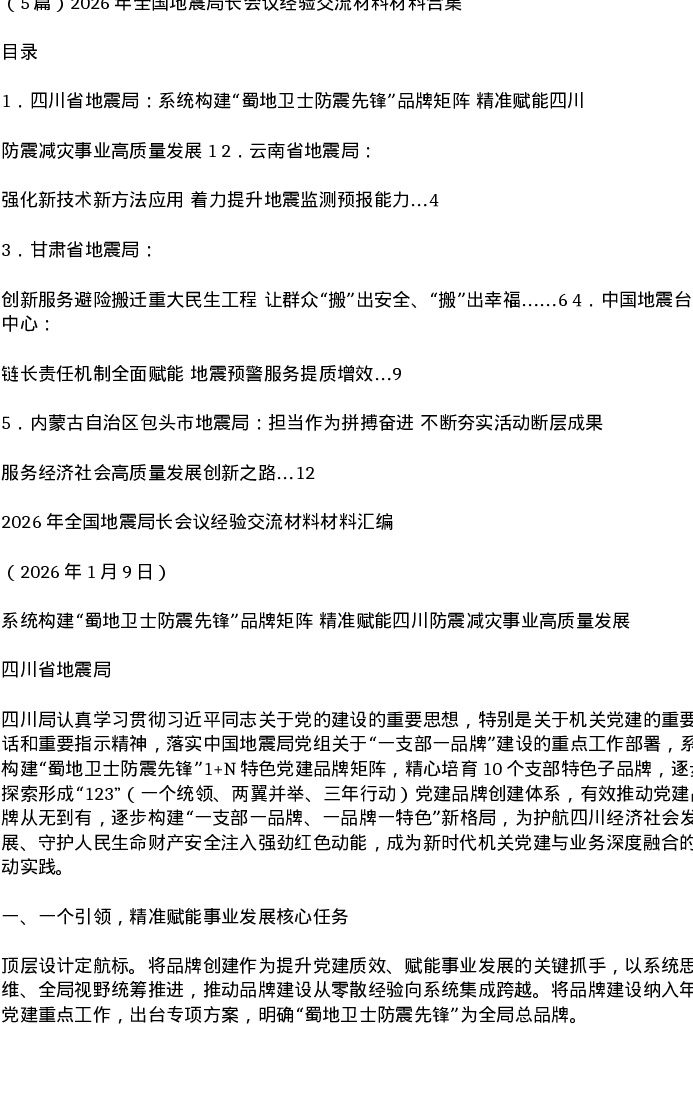 汇编:2026年全国地震局长会议经验交流发言材料材料合集5篇