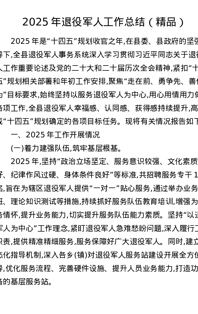 2025年退役军人工作总结
