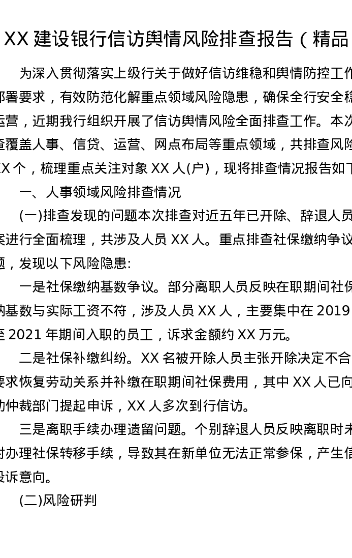 XX建设银行信访舆情风险排查报告