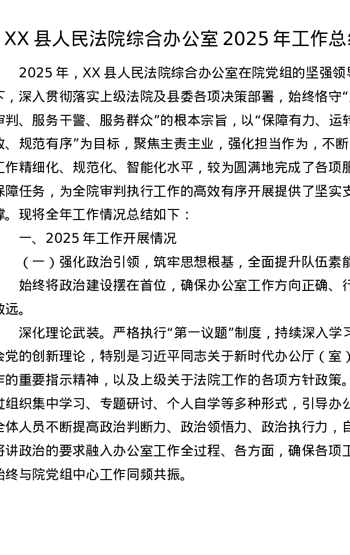 XX县人民法院综合办公室2025年工作总结