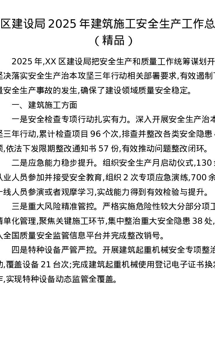 区建设局2025年建筑施工安全生产工作总结