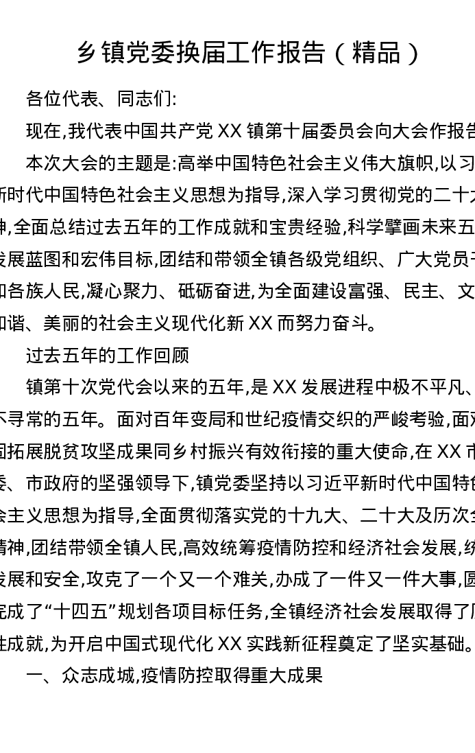 乡镇党委换届工作报告(精品)