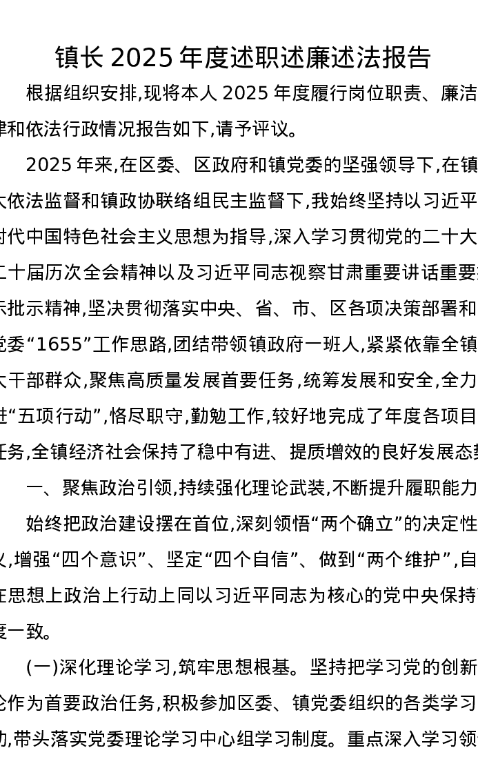 镇长2025年度述职述廉述法报告