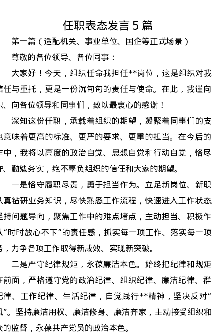 任职表态发言5篇