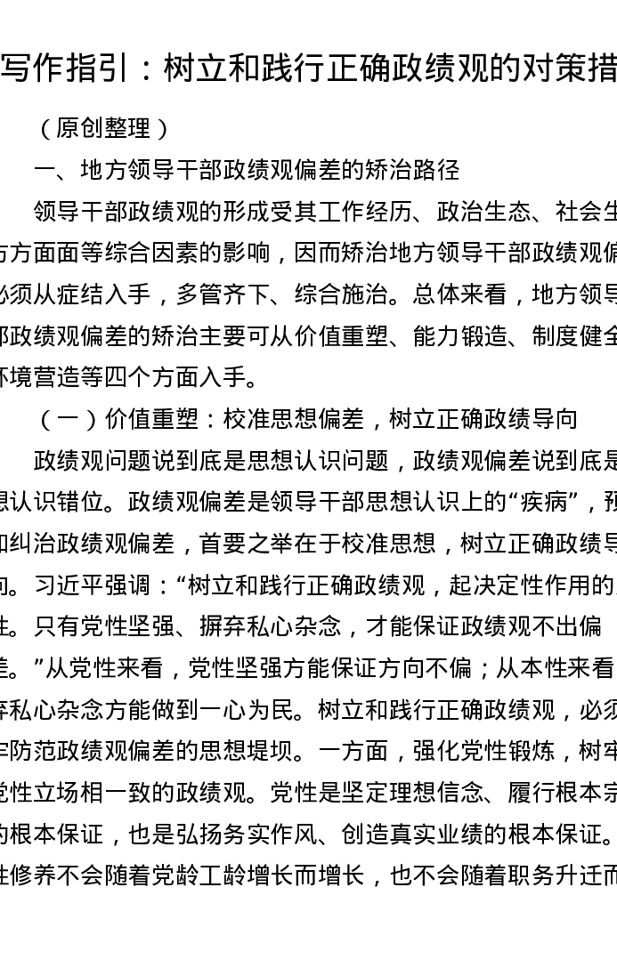 写作指引:树立和践行正确政绩观的对策措施