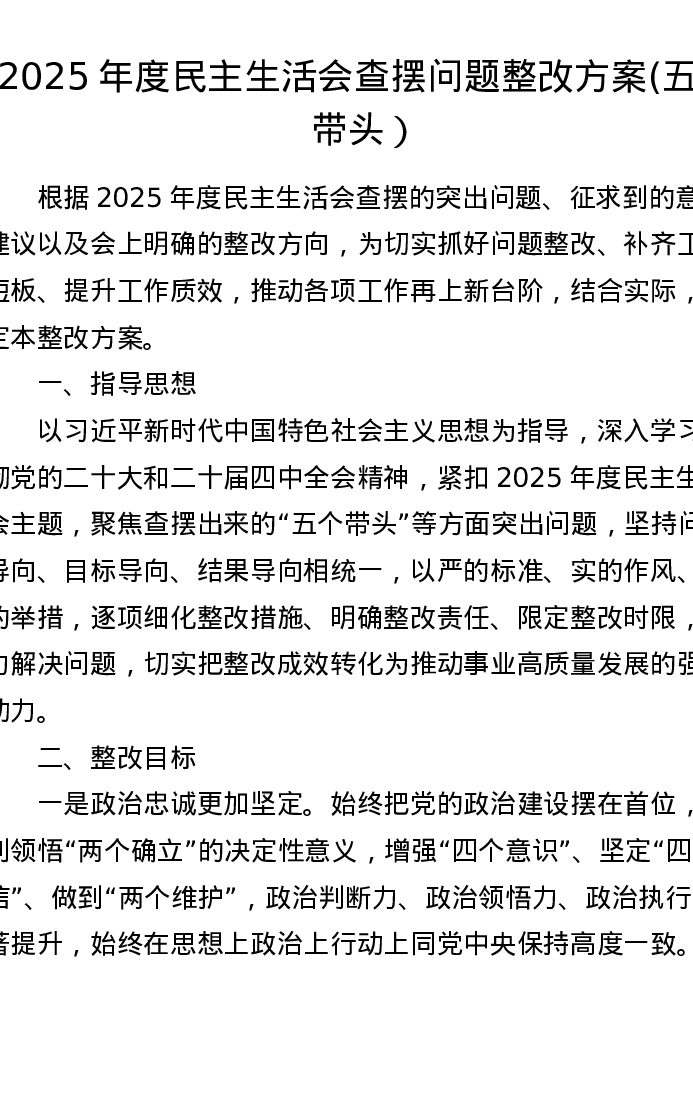 2025年度xxxxx查摆问题整改方案 (五个带头)