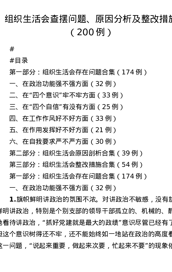 组织xxx查摆问题、原因分析及整改措施(200例)