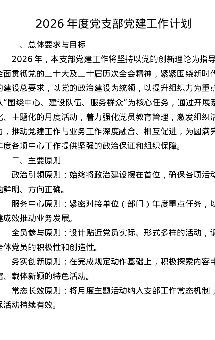 2026年度党支部党建工作计划