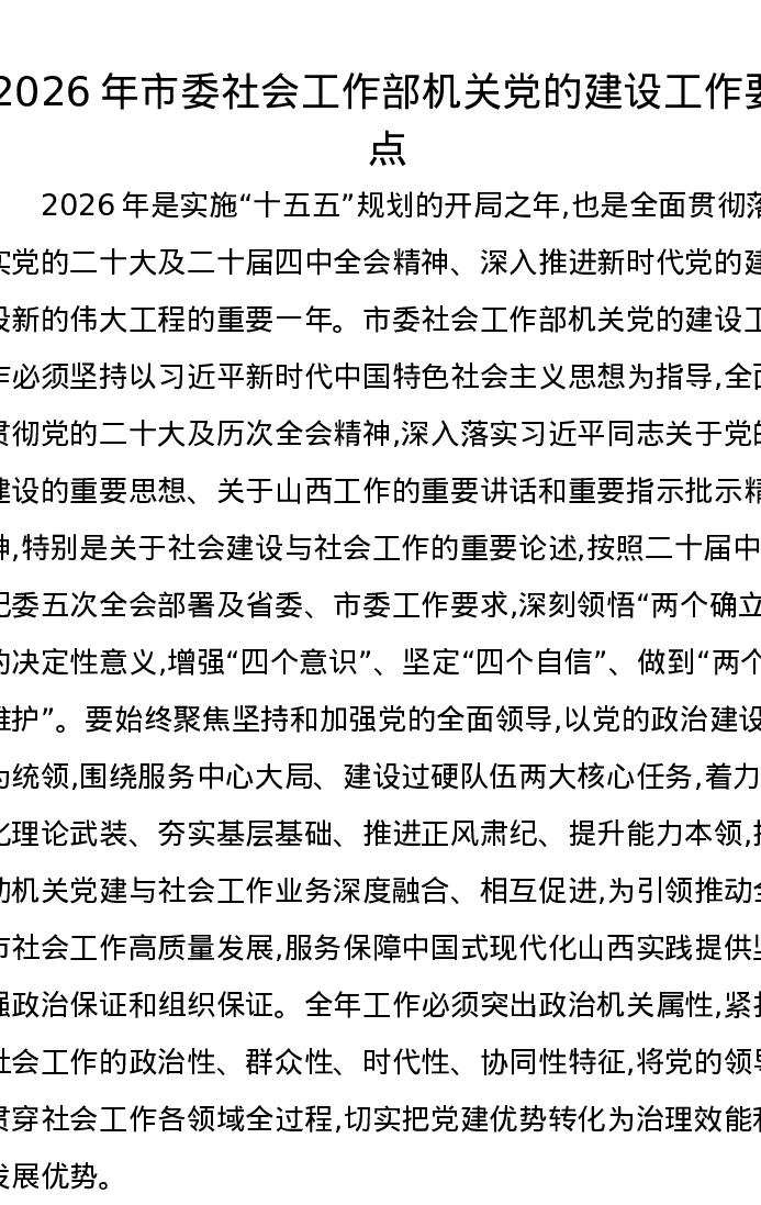2026年市委社会工作部机关党的建设工作要点