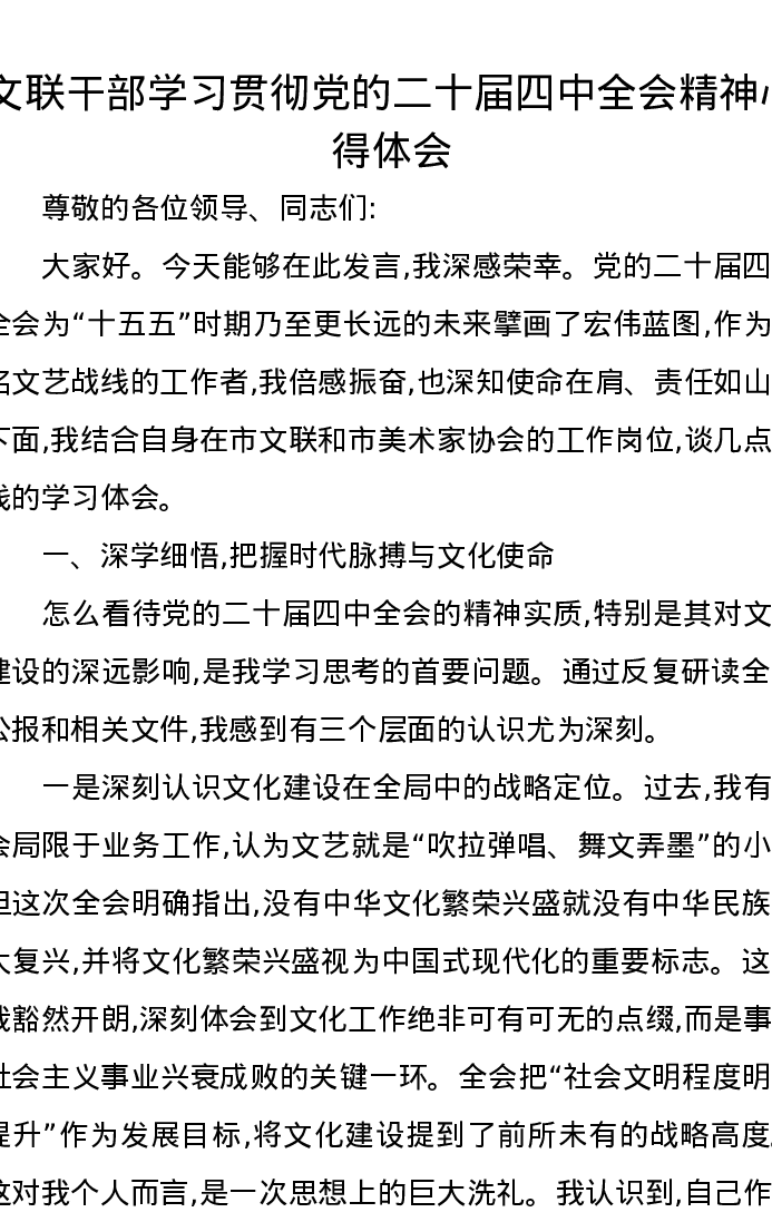 文联干部学习贯彻党的二十届四中全会精神心得体会