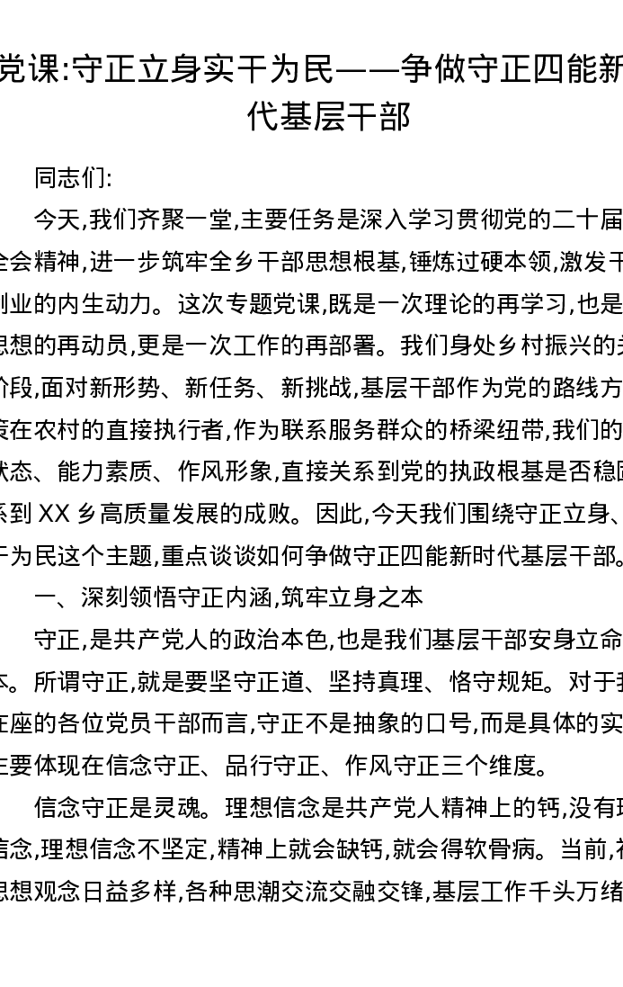 党课:守正立身实干为民——争做守正四能新时代基层干部