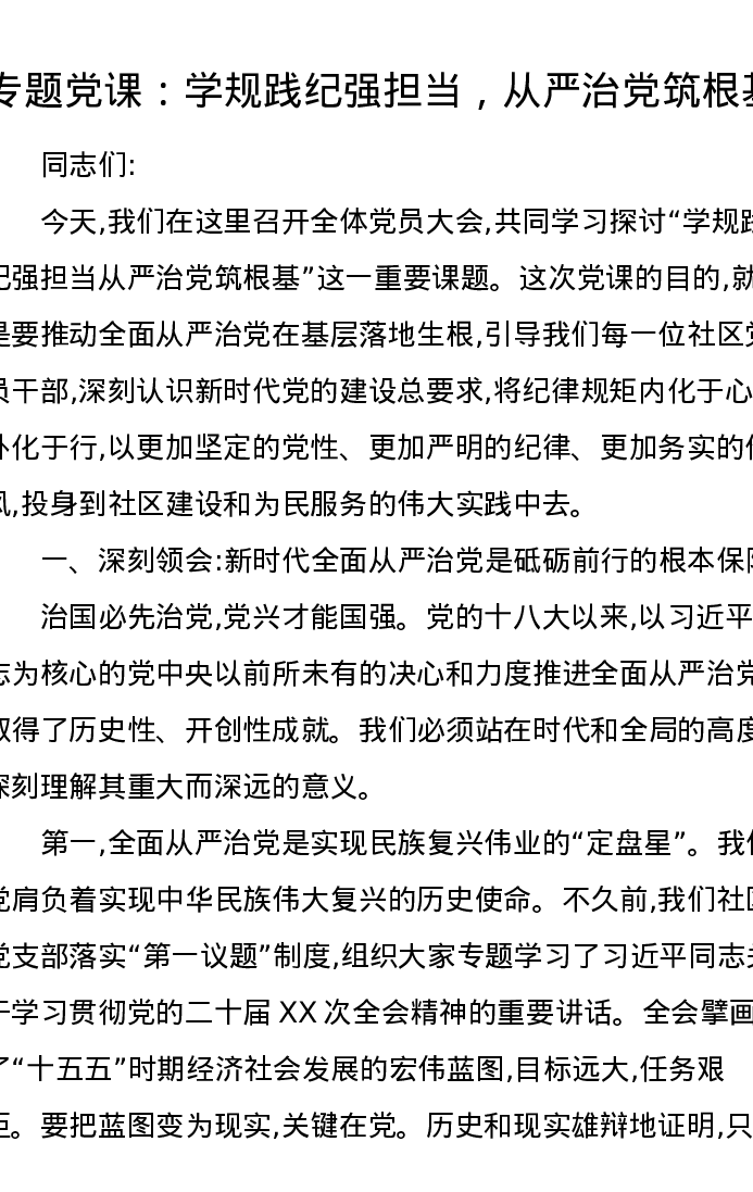 专题党课:学规践纪强担当,从严治党筑根基
