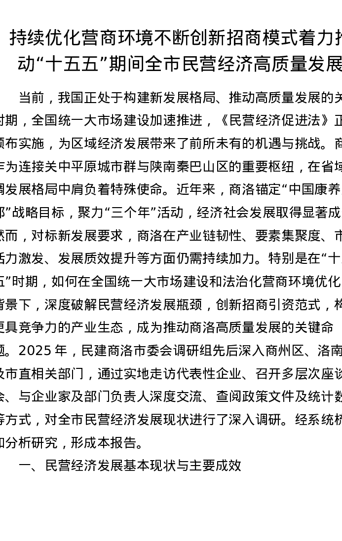 持续优化营商环境 不断创新招商模式 着力推动十五五期间全市民营经济高质量发展