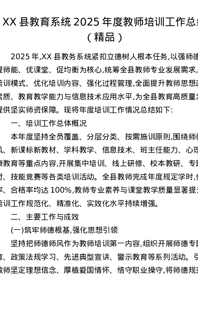 XX县教育系统2025年度教师培训工作总结