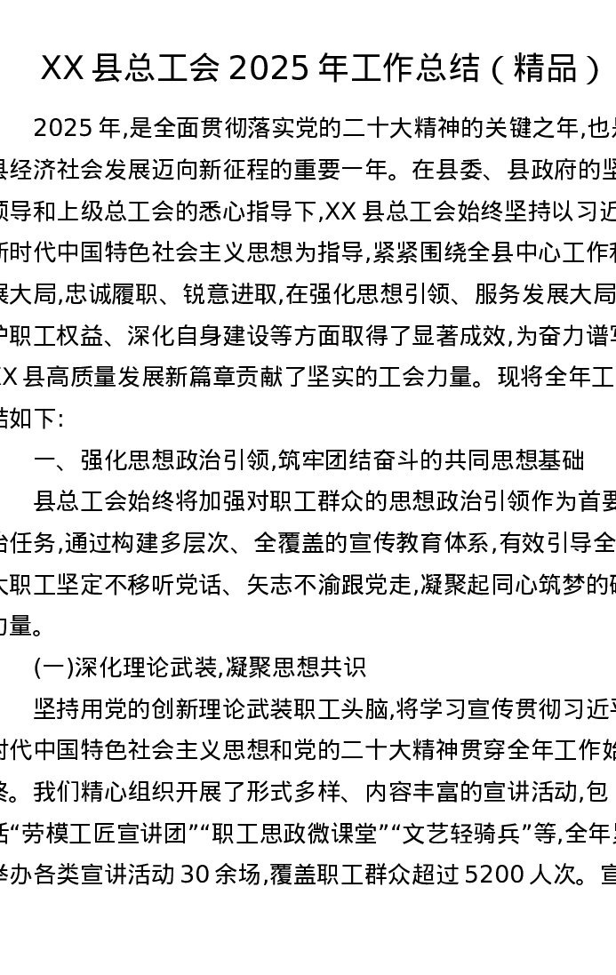 XX县总工会2025年工作总结