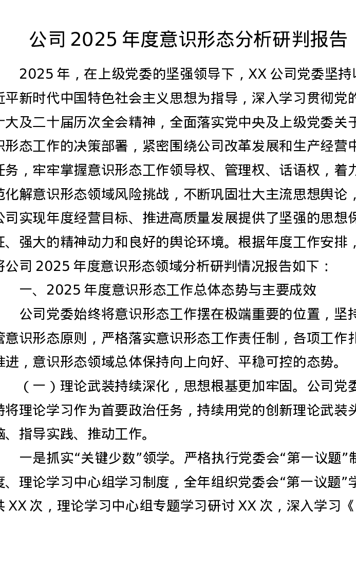 公司2025年度意识形态分析研判报告