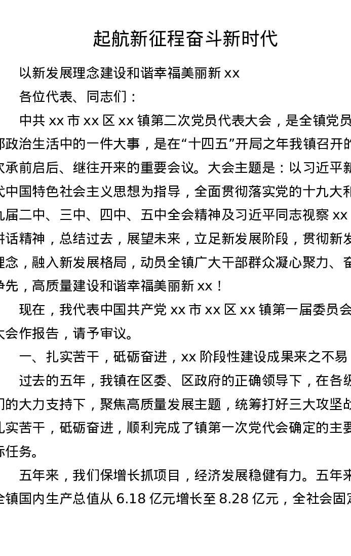 某乡镇党委书记2021年在镇第二次党代会上的报告(6294字)