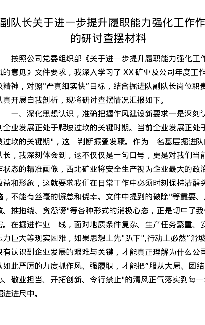 副队长关于进一步提升履职能力强化工作作风的研讨查摆材料