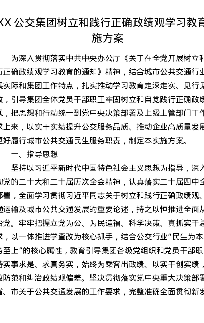 XX公交集团树立和践行正确ZJG学习教育实施方案