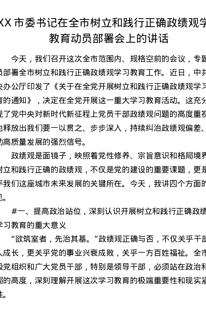 XX市委书记在全市树立和践行正确ZJG学习教育动员部署会上的讲话(4989字)