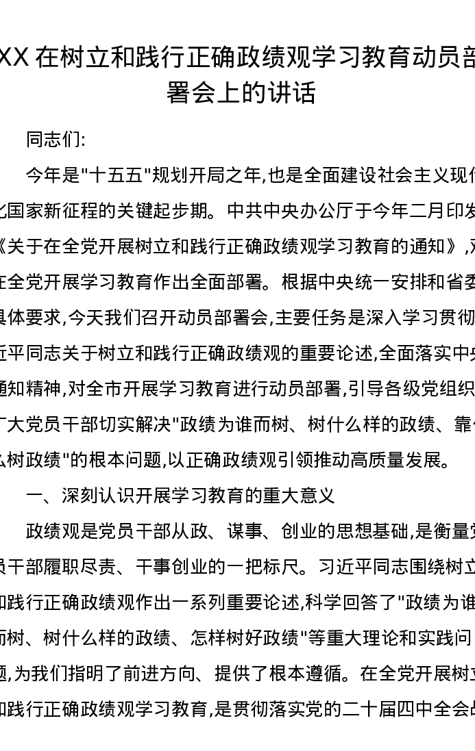XX在树立和践行正确ZJG学习教育动员部署会上的讲话