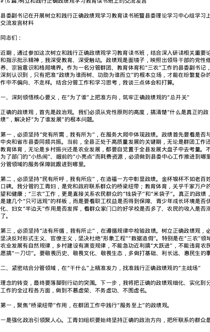 汇编:树立和践行正确ZJG学习教育读书班上的交流发言6篇