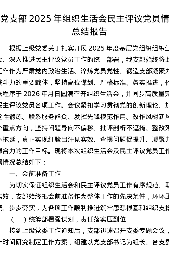 党支部2025年组织xxx民主评议党员情况总结报告:凝心铸魂强党性,批评自新促提升