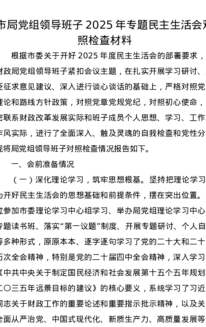 市局党组领导班子2025年专题xxxxx对照检查材料