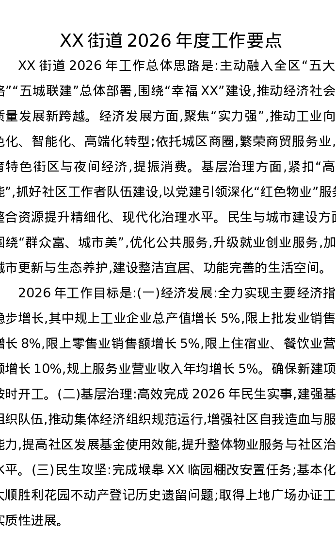 XX街道2026年度工作要点