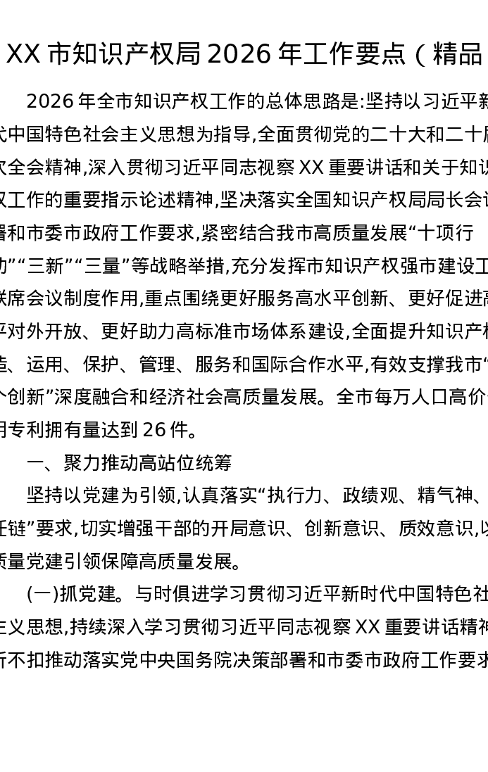 XX市知识产权局2026年工作要点