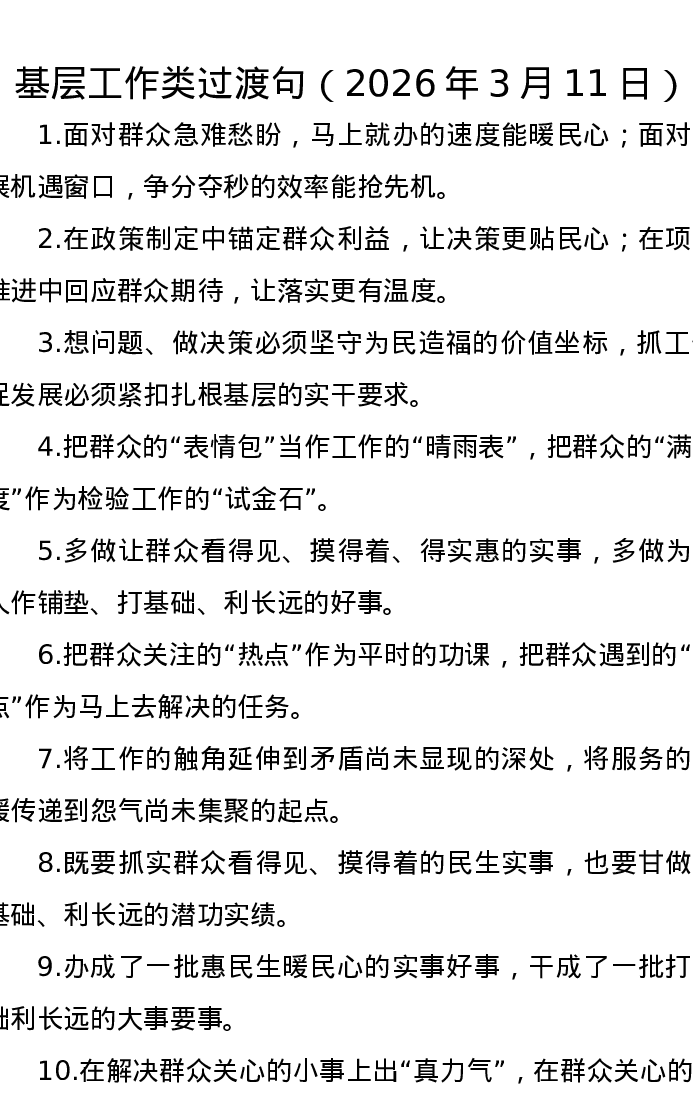 基层工作类过渡句(2026年3月11日)