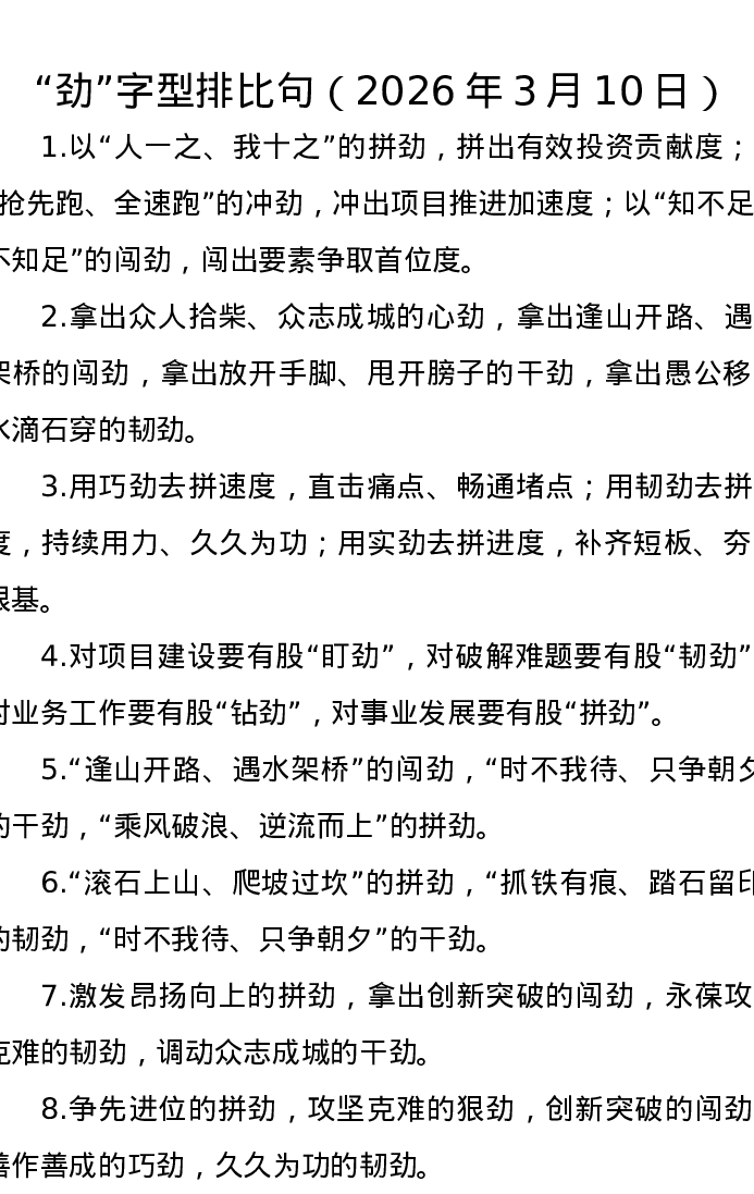 劲字型排比句(2026年3月10日)