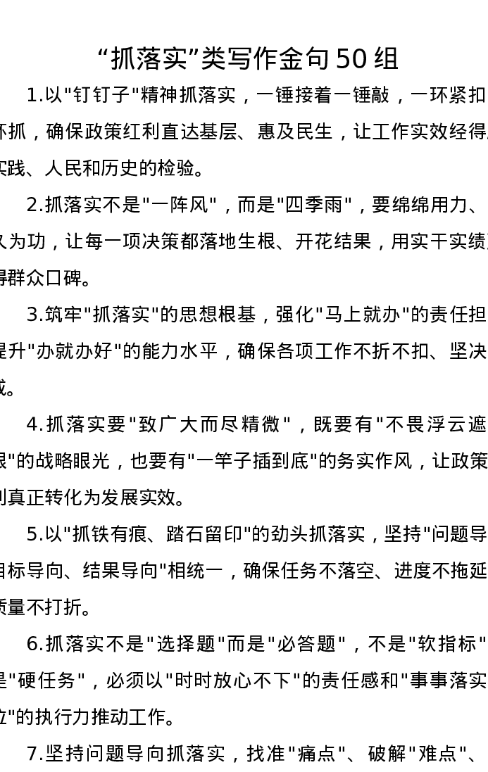 抓落实类写作金句50组