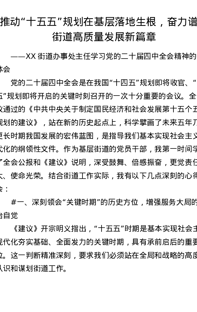 XX街道办事处主任学习党的二十届四中全会精神的心得体会(3509字)
