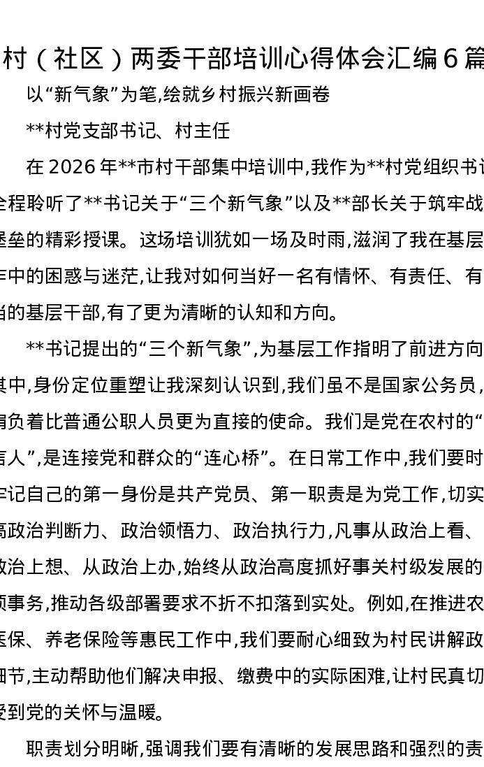 村(社区)两委干部培训心得体会汇编6篇