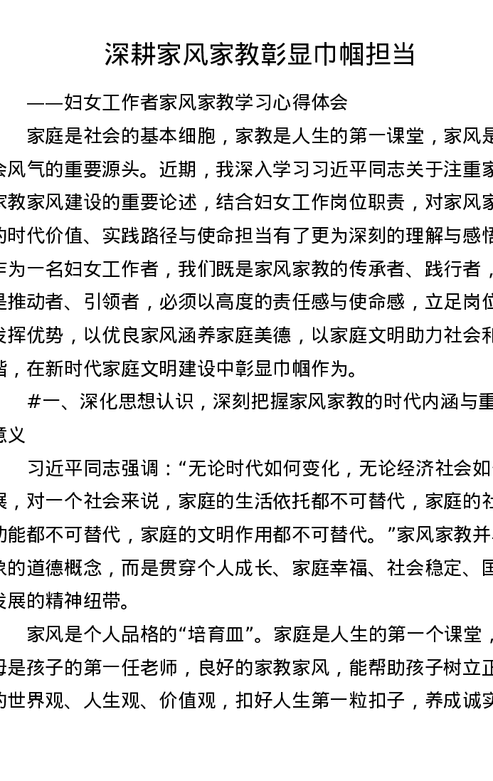 妇女工作者关于家风家教的学习心得体会(2815字)