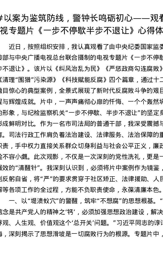 以案为鉴筑防线,警钟长鸣砺初心——观看电视专题片《一步不停歇半步不退让》心得体会