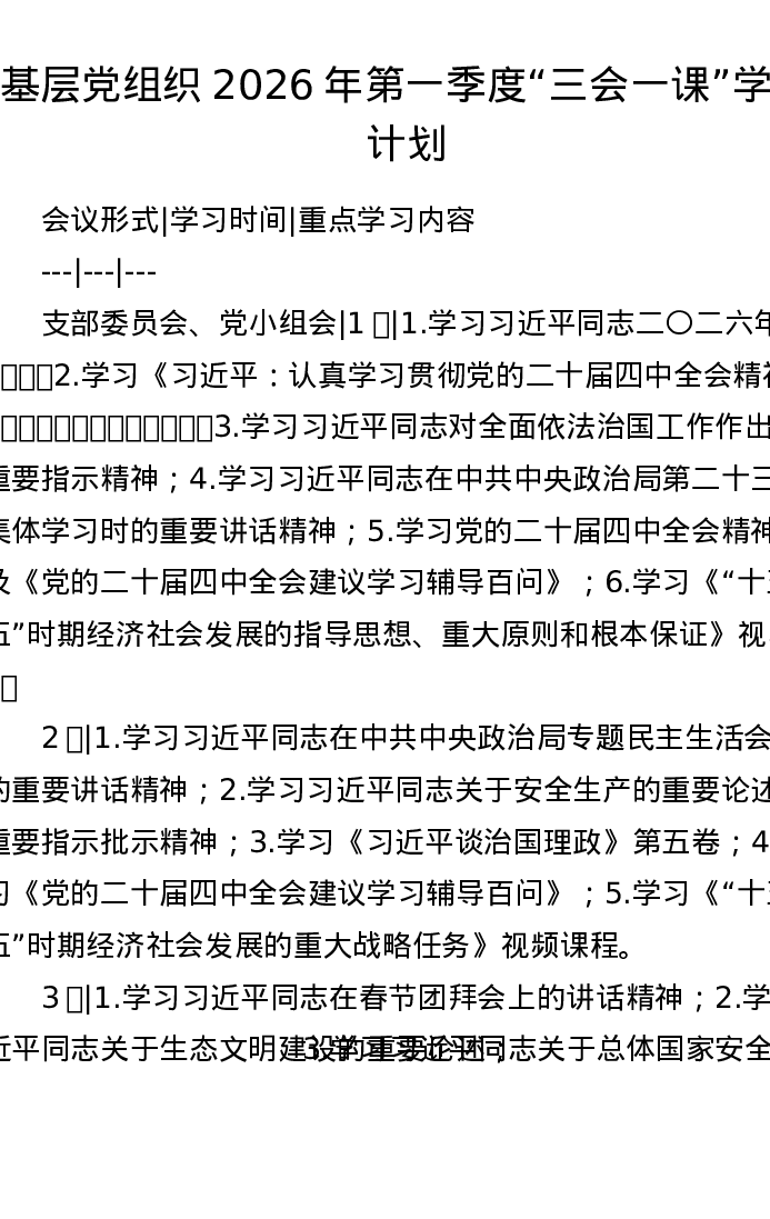 基层党组织2026年第一季度三会一课学习计划