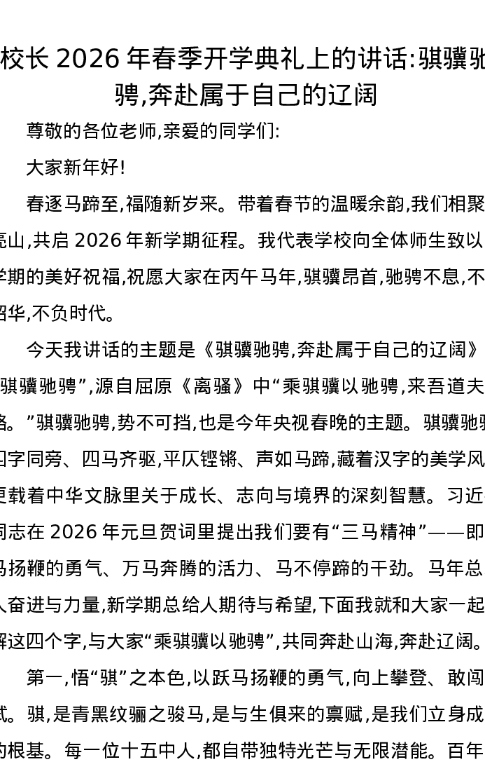 校长2026年春季开学典礼上的讲话骐骥驰骋,奔赴属于自己的辽阔
