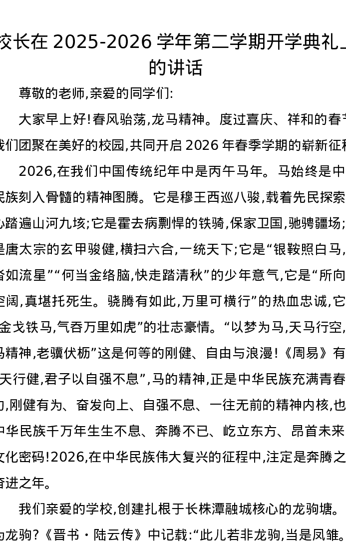 校长在2025-2026学年第二学期开学典礼上的讲话