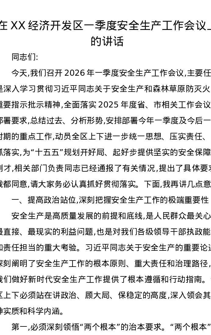 在XX经济开发区一季度安全生产工作会议上的讲话