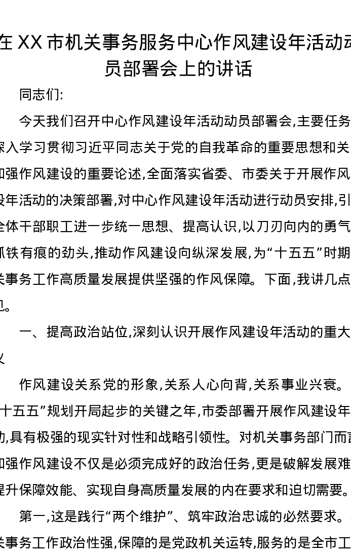 在XX市机关事务服务中心作风建设年活动动员部署会上的讲话