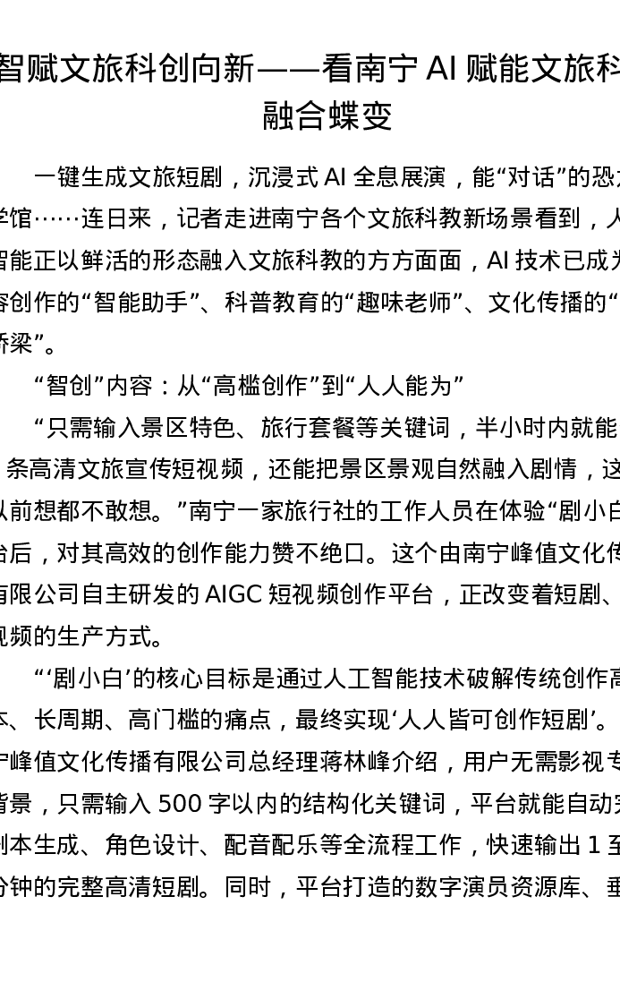 智赋文旅 科创向新——看南宁 AI 赋能文旅科教融合蝶变