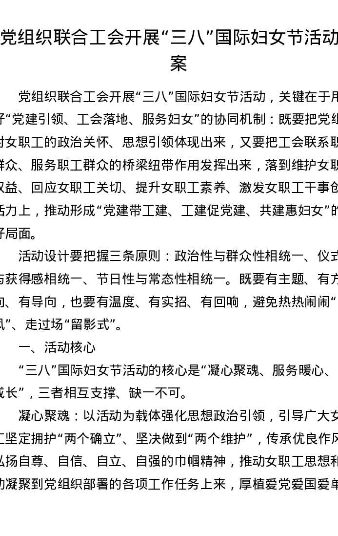 党组织联合工会开展三八国际妇女节活动方案